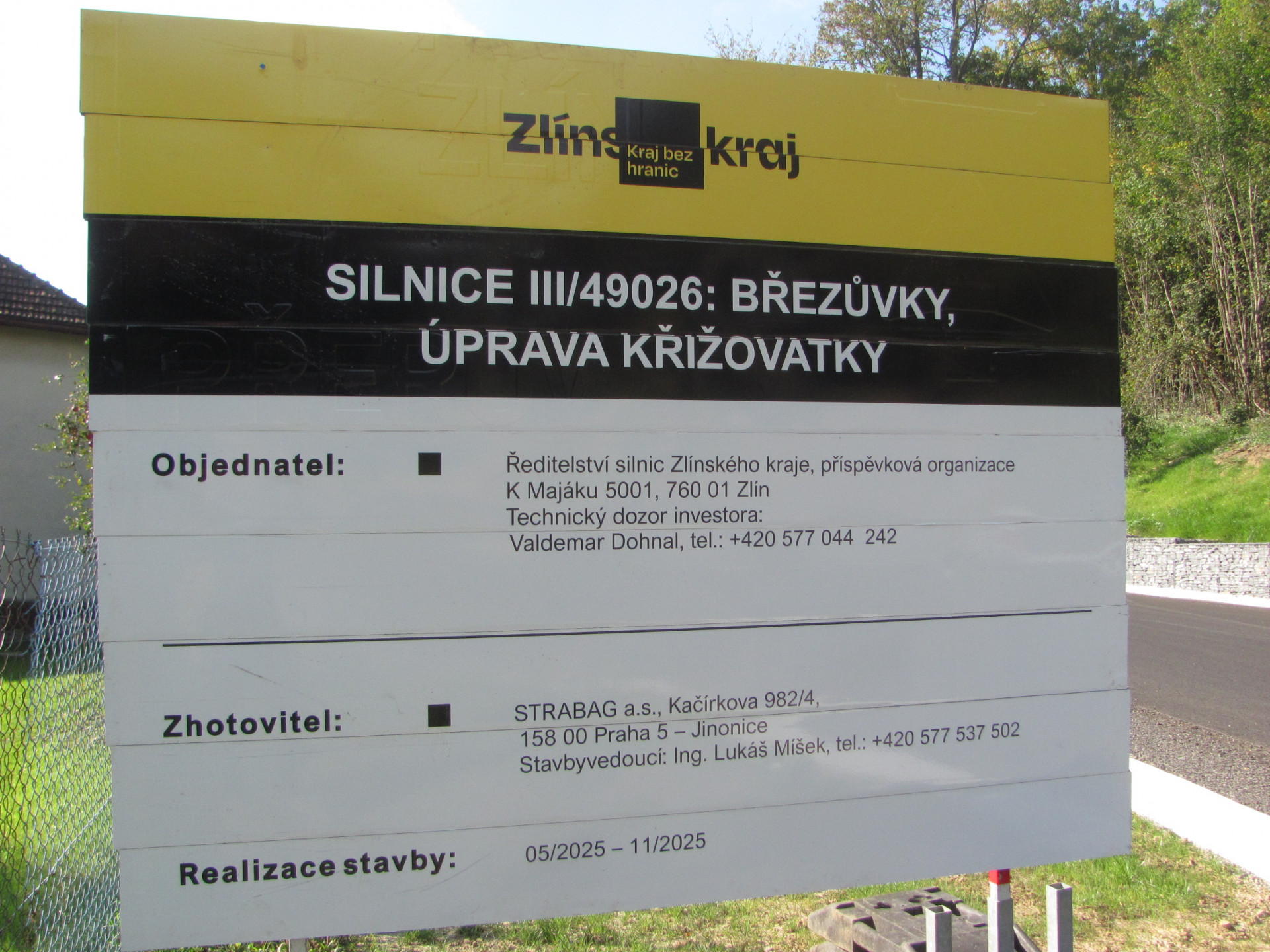 Březůvky - Křižovatka u Březůvek s ostrým úhlem napojení dvou krajských silnic změnila svůj tvar. Křižovatku nyní tvoří kolmé napojení ve tvaru písmene T. Silničáři zde nákladem více než 6 milionů korun výrazně zvýšili bezpečnost silničního provozu. Od začátku října je rekonstruovaná křižovatka ve všech směrech volně průjezdná.