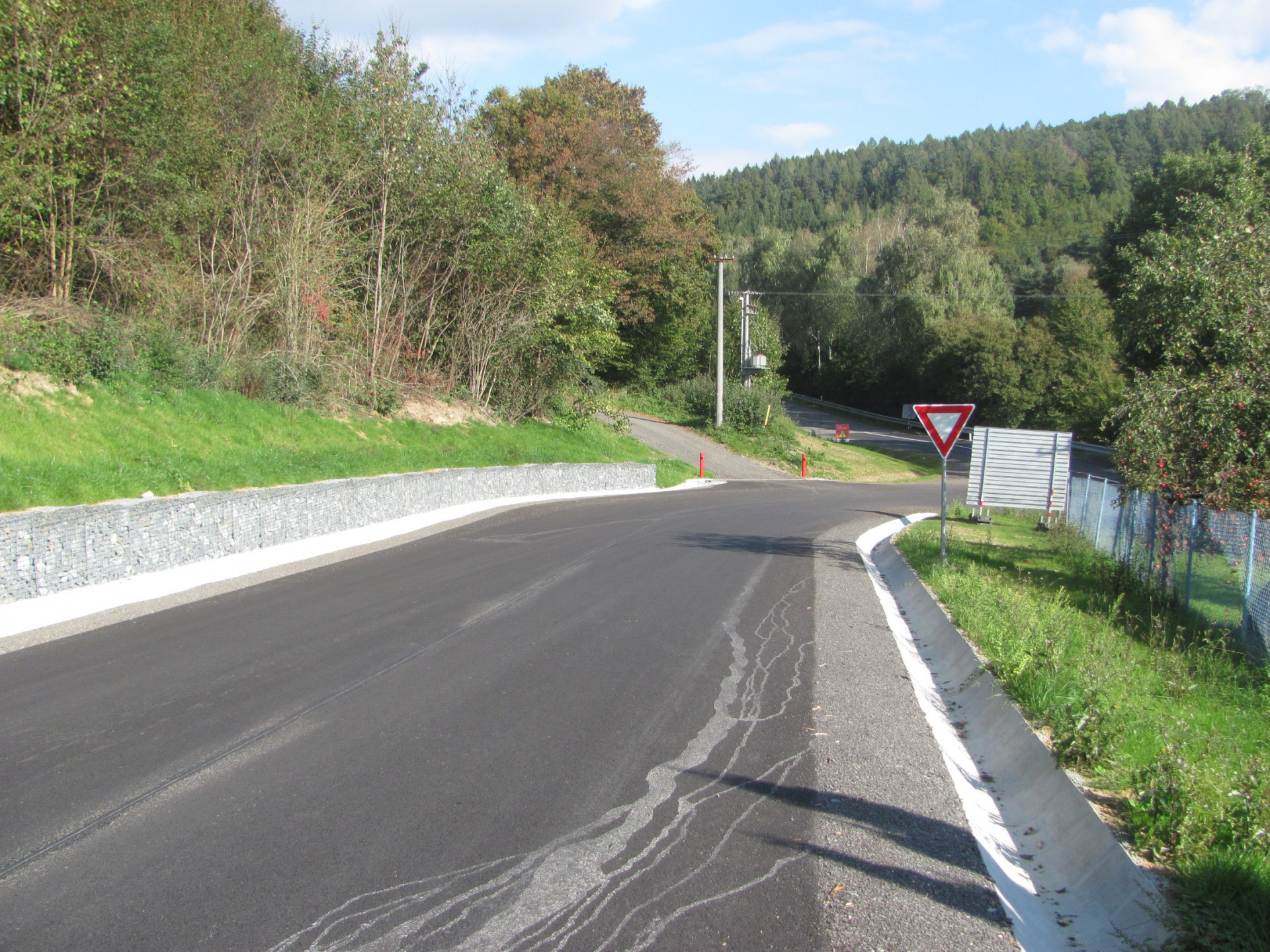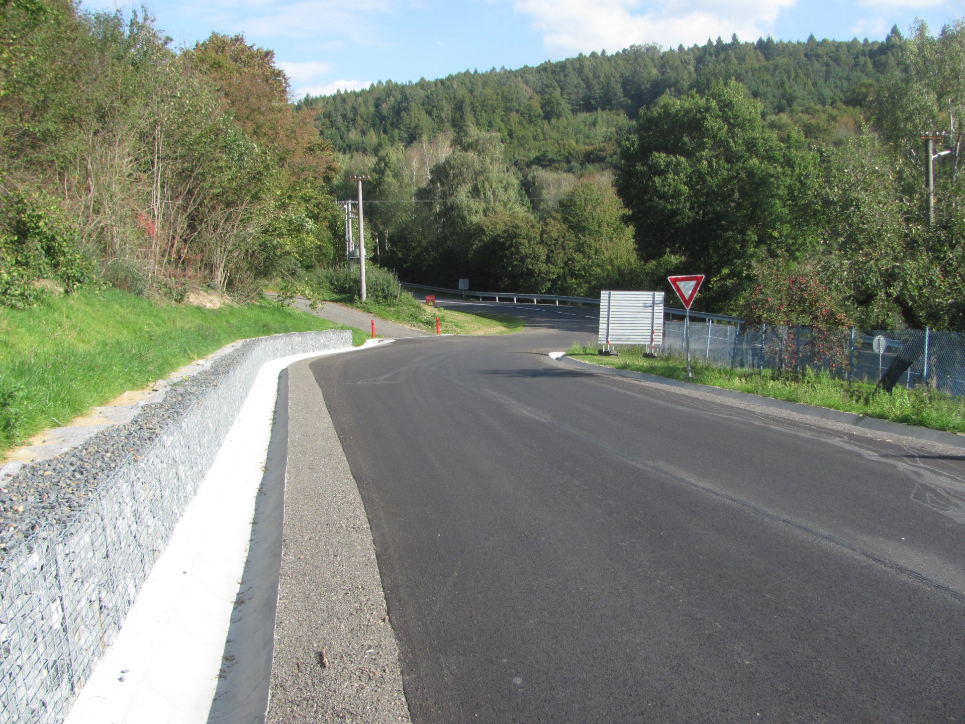 Součástí stavební úpravy bylo vybudování nové zárubní gabionové zdi délky 48 metrů, výšky jednoho metru. Odvodnění silnic je zajištěno příčným a podélným sklonem do příkopových tvárnic a přilehlých příkopů. Byla realizována stavební úprava připojení účelové komunikace a sjezdu, přeložka původního oplocení, osazení silničního svodidla, obnova a doplnění svislého a vodorovného dopravního značení.