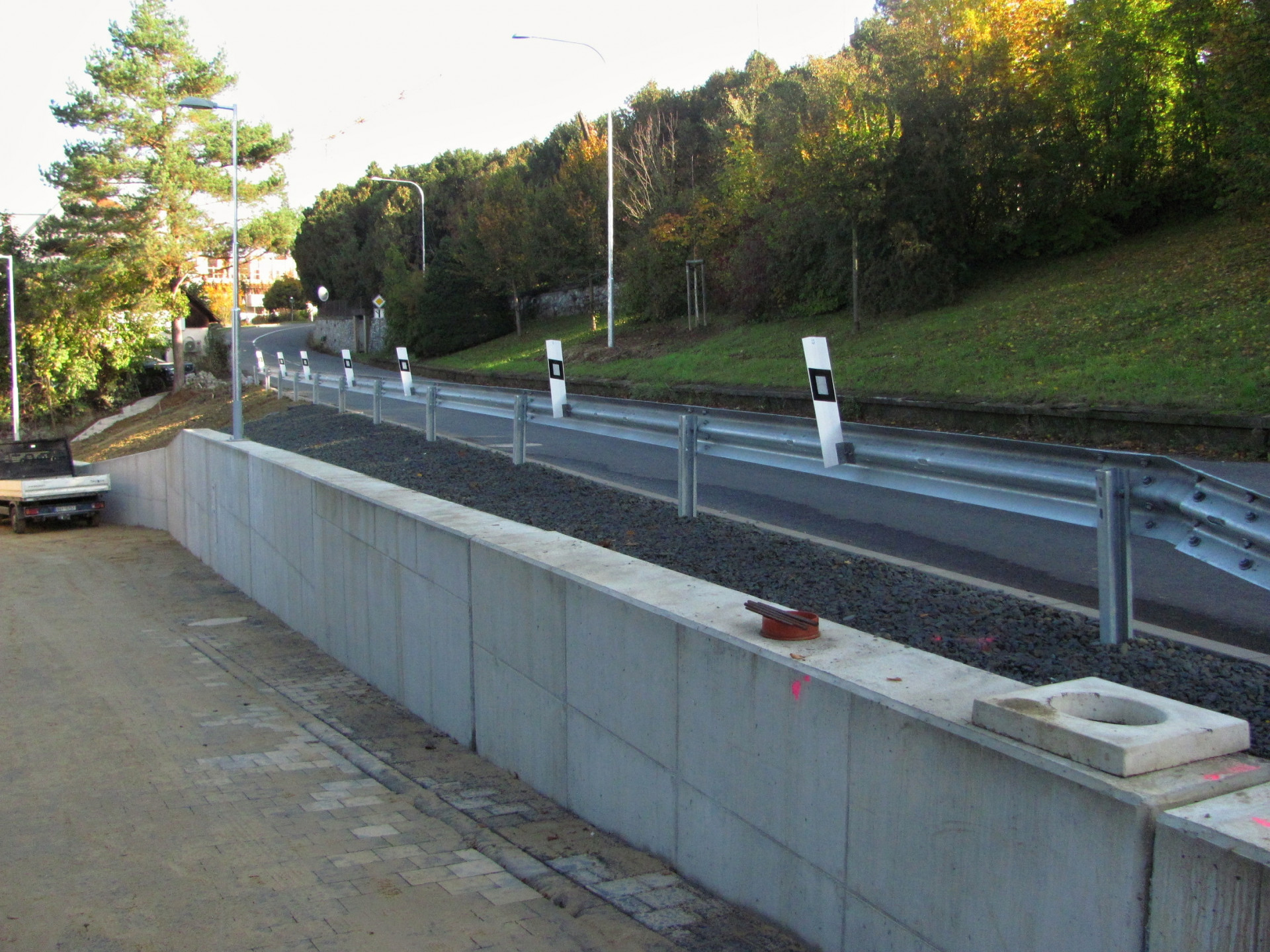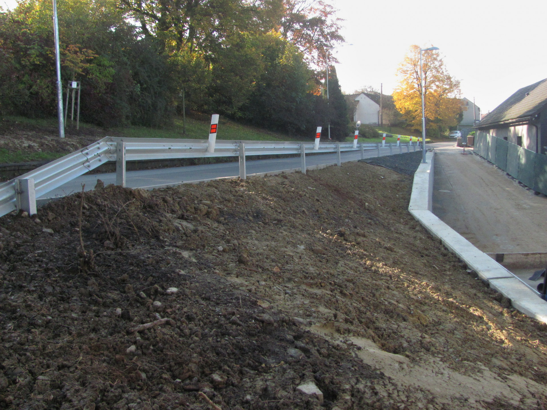 Statické zajištění silničního tělesa v ulici Návesní ve Zlíně na Mladcové a částečná úprava této komunikace v délce 66 metrů byly předmětem investiční stavby ŘSZK, která probíhala ve spolupráci s městem Zlínem od letošního 19. května za částečné uzavírky silnice s řízením provozu světelnou signalizací. Šlo o statické zajištění místní komunikace a silničního tělesa komunikace III/49016 pomocí železobetonové úhlové opěrné zdi ve svažitém terénu v ulici Návesní.