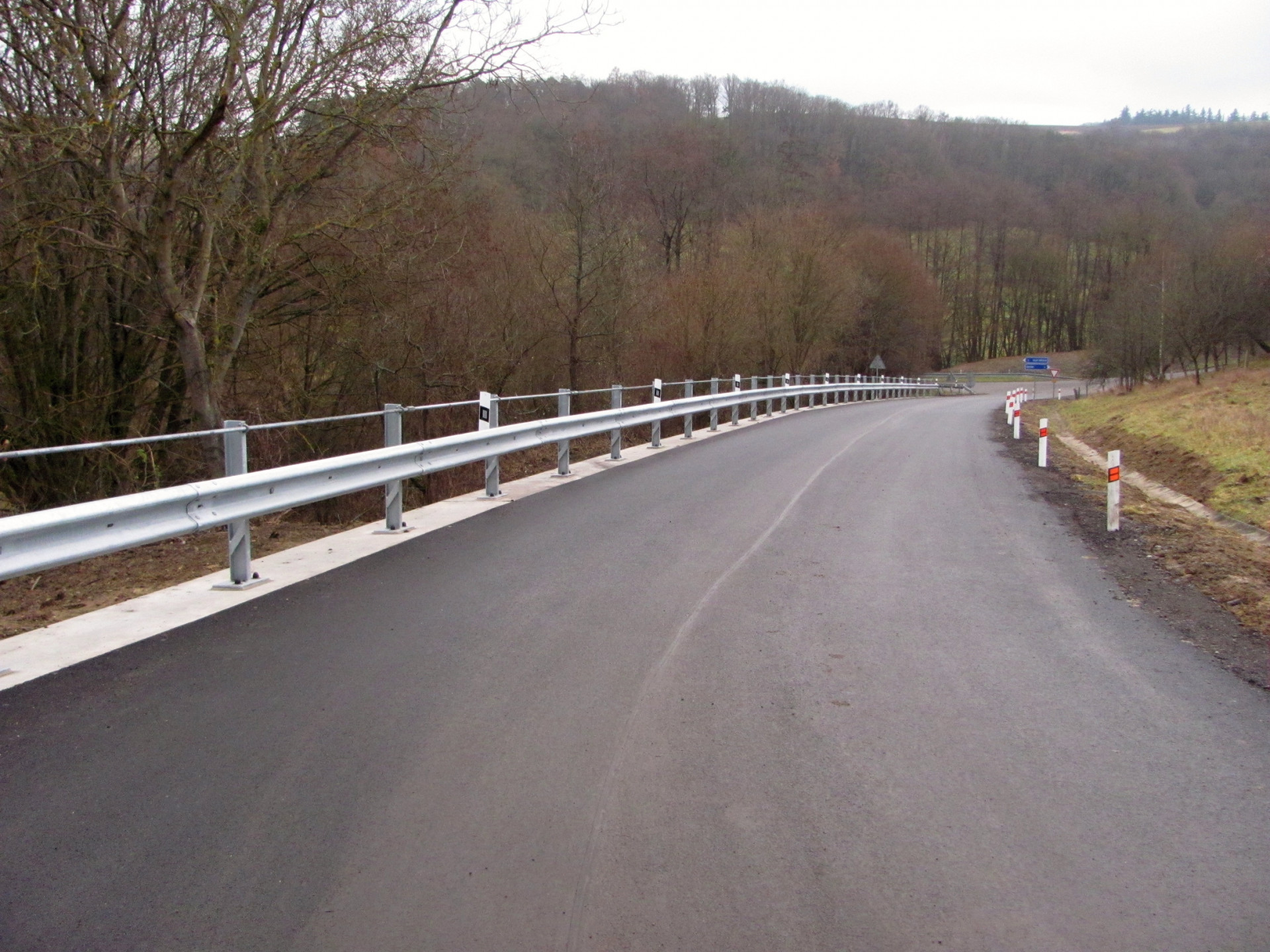 Sanace vozovky spočívala v odfrézování asfaltových vrstev v průměrné mocnosti 120 milimetrů, v lokálních vysprávkách a v následném položení živičných vrstev. Odvodnění je zajištěno podélným a příčným spádem přes římsu zdi do žlabů z lomového kamene, umístěných na začátku a konci opěrné zdi. Doplněno bylo drenáží na rubové straně opěrné zdi.