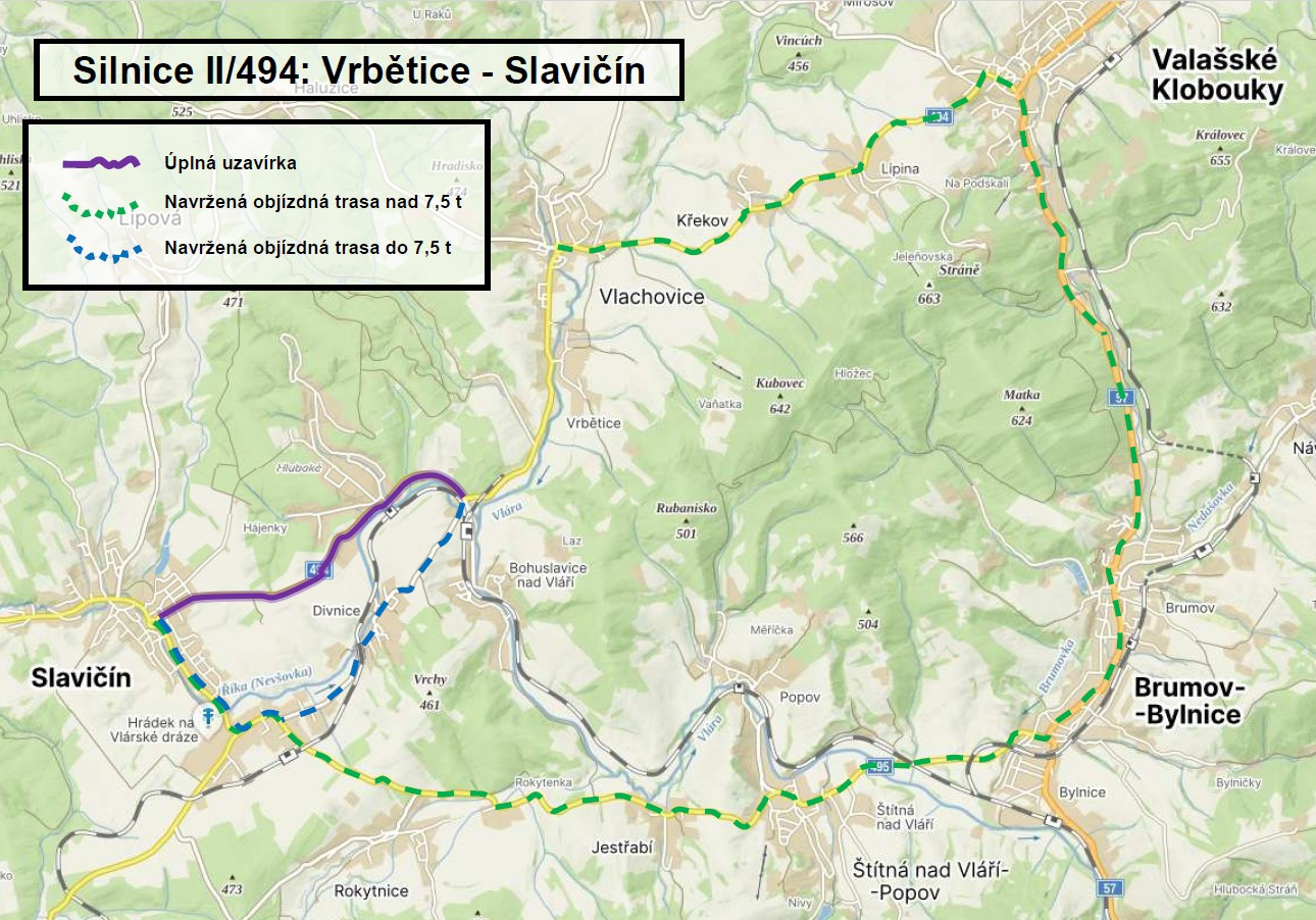 Předmětem zakázky je stavební úprava silnice II/494 mezi Vlachovicemi-Vrběticemi a Slavičínem v celkové délce 5 460 metrů. Rekonstrukce silnice spočívá ve sjednocení šířky vozovky na 6,5 metru s rozšířením v obloucích v původním směrovém vedení. Dojde k odfrézování stávajícího povrchu a k následné pokládce nových asfaltových vrstev, včetně sanace podkladních vrstev. V místech s nedostatečnou únosností a v okrajích vozovky bude provedena kompletní konstrukce vozovky. Odvodnění vozovky a zpevněných ploch je zabezpečeno jejich podélnými a příčnými sklony. Dešťové vody budou odvedeny v místech s nezpevněnou krajnicí do příkopů nebo zpevněných rigolů a dále přes vtokové objekty do kanalizace. V místech s podélnou obrubou bude voda odváděna do dešťových vpustí.