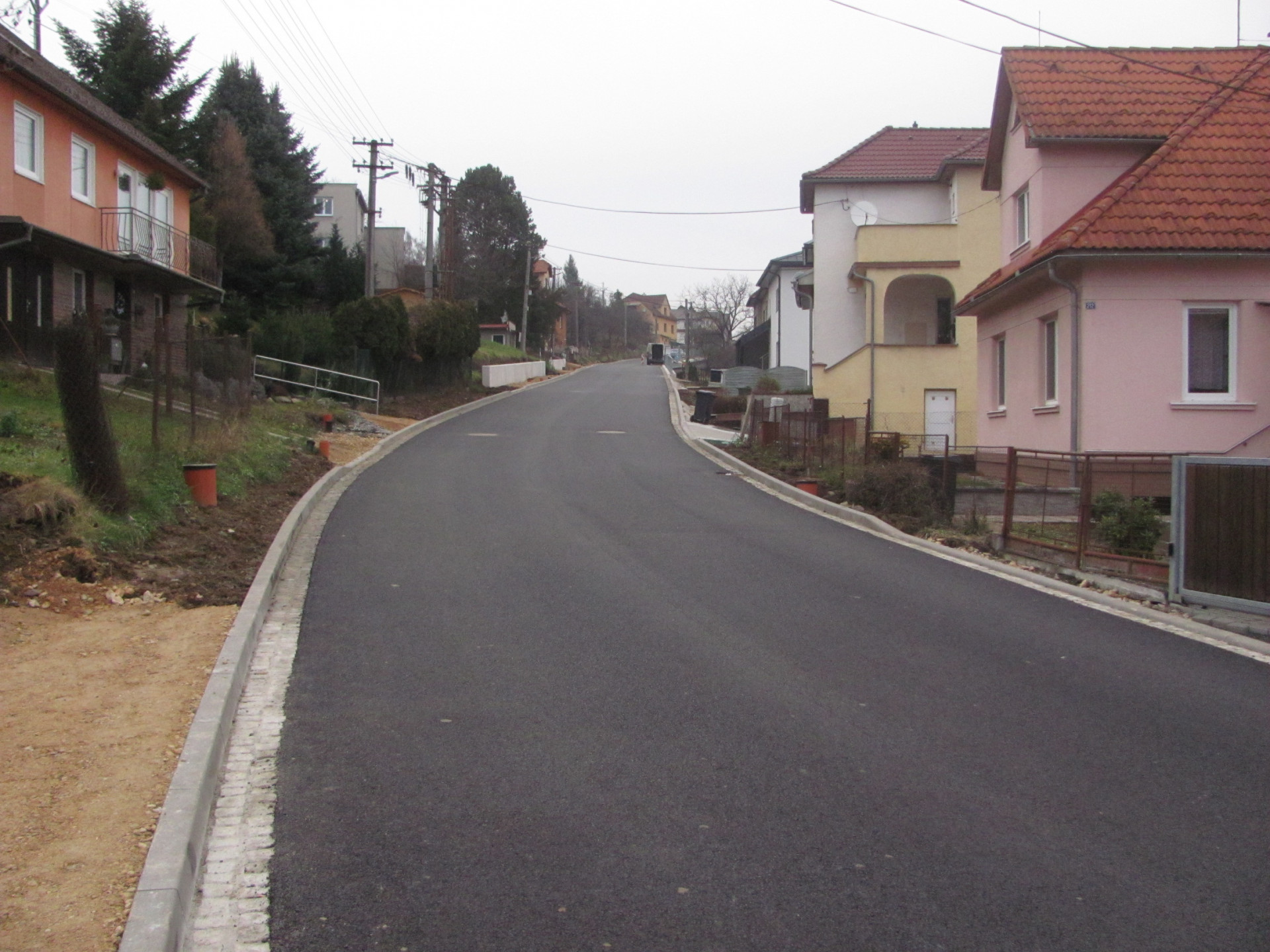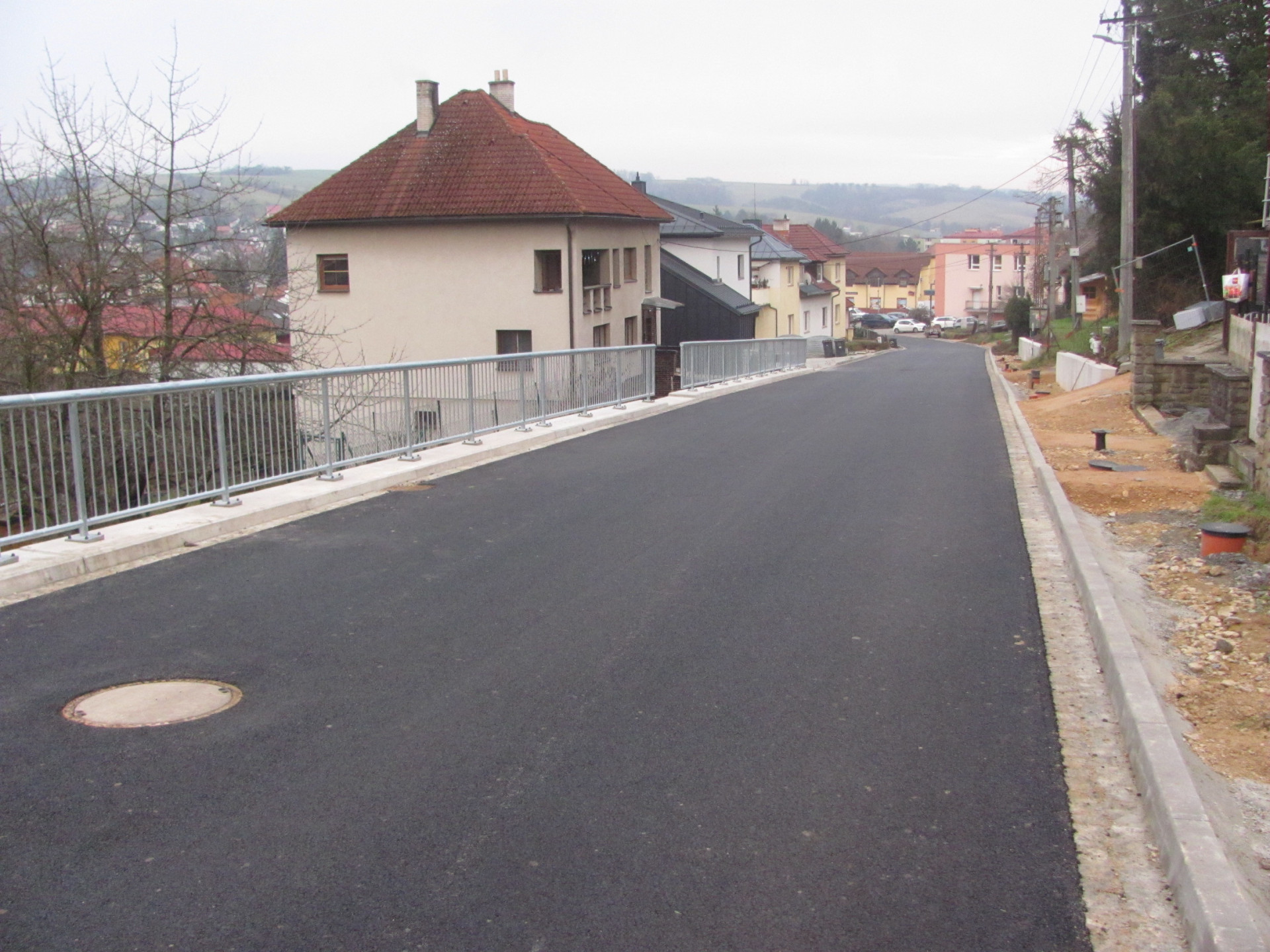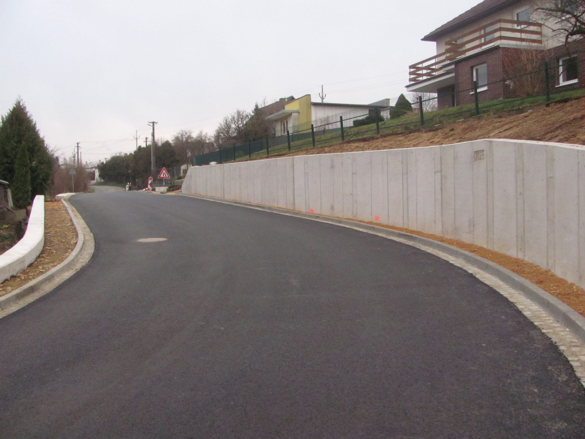 Slušovice - V předstihu proti původním předpokladům se podařilo již v první polovině prosince 2025 zprůjezdnit po rekonstrukci úsek silnice ve svažitém terénu průtahu ve Slušovicích ve směru na Březovou nebo Hvozdnou. Budou zde pokračovat ještě práce města na chodnících, zábradlí a okolním terénu.