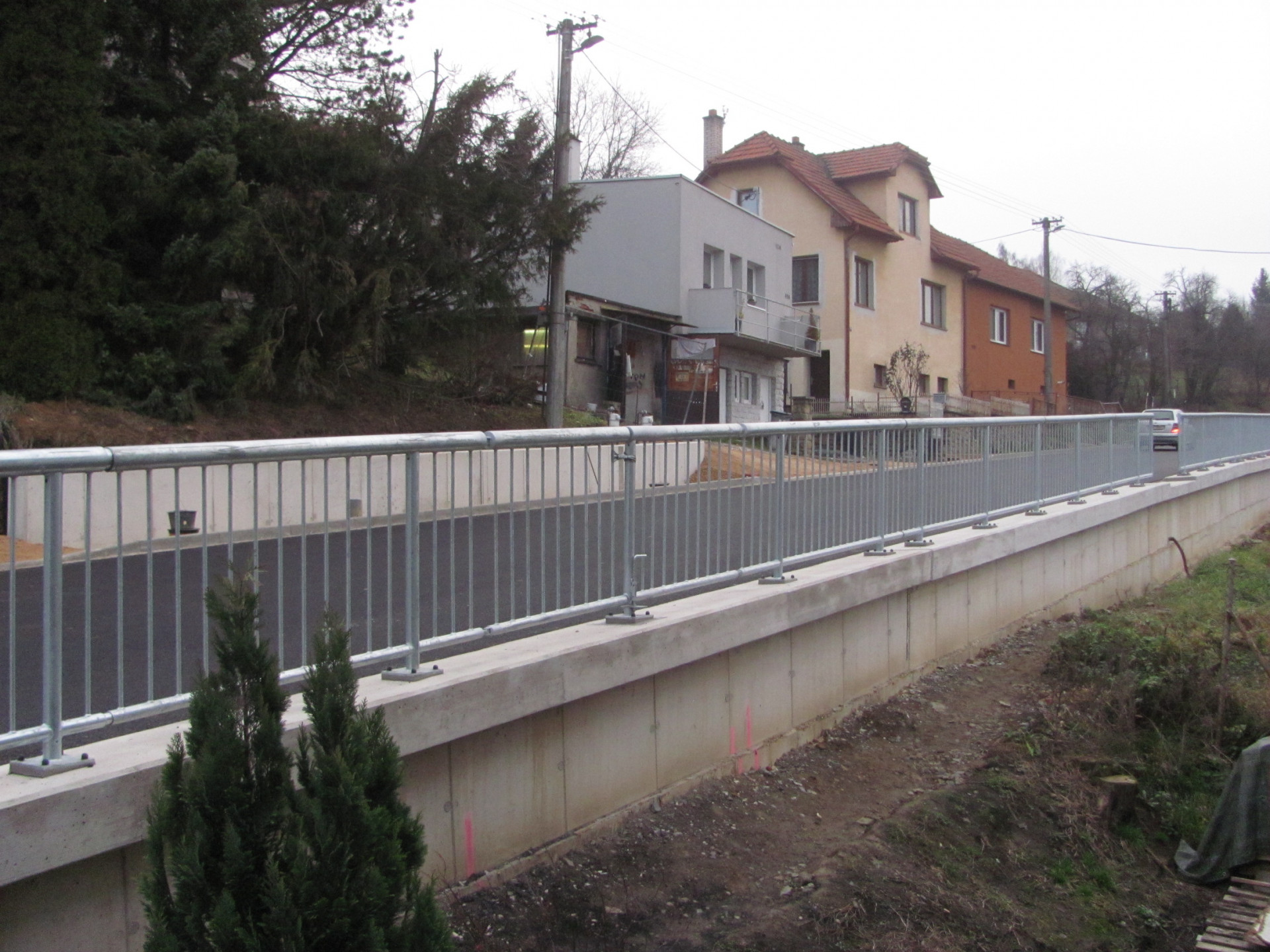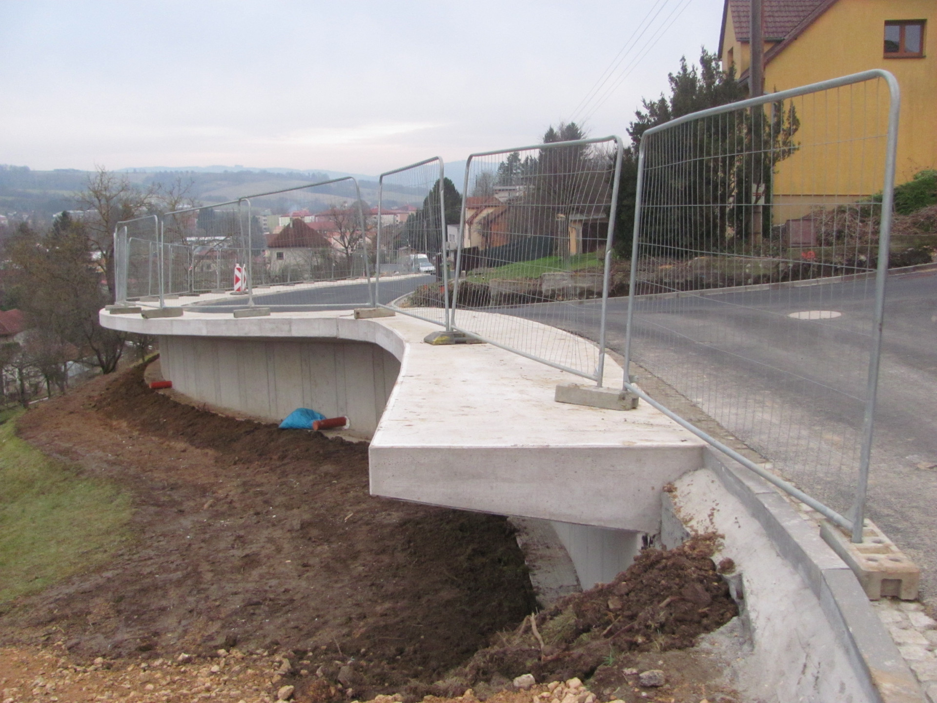 Součástí stavby bylo vybudování nové pilotové zdi, umožňující rozšíření silnice a umístění chodníku, která ve svažitém terénu stabilizuje silniční těleso. Tato zeď je dlouhá 127 metrů. Dále byla vybudována zárubní zeď délky 34 metrů ze záporového pažení, opěrná zeď založená na mikropilotách o délce 52 metrů a železobetonový trámec délky 20 metrů.